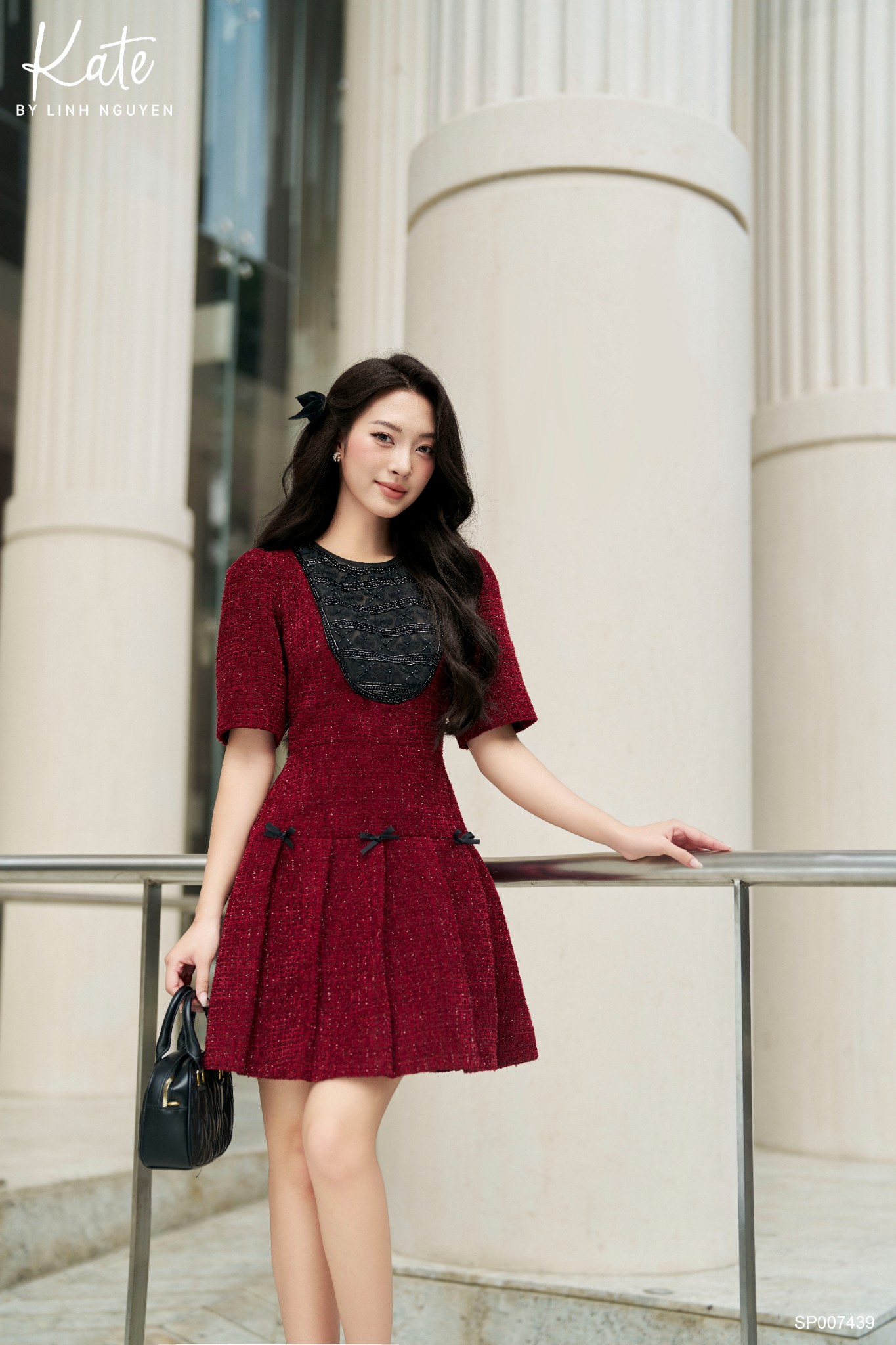 Fairy Dress mang đến sự cuốn hút cho nàng với chất liệu tweed nhung cao cấp ánh kim, cùng thiết kế cổ đính đá sang chảnh. Sự phối hợp hoàn hảo giữa tone màu đỏ đô làm chủ đạo, phối đen phần ngực cùng điểm nhấn nơ thắt không chỉ nổi bật mà còn tạo nên dấu ấn thị giác độc đáo, mang đậm nét quyến rũ vô cùng nữ tính.